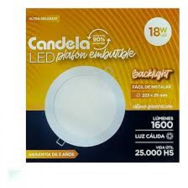 Plafon Led Backlight Redondo Embutir 18W Calida Candela 7543
